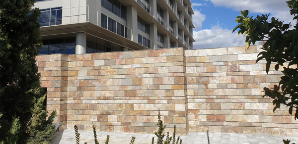 Esta roca metamórfica cristalina clasificada como esquisto cuartico de cálidos tonos rojos cobrizos y multicolores, siempre ha sido un material muy apreciado en España como piedra ornamental, debido a su dureza, rugosidad, impermeabilidad, resistencia a la oxidación, etc. Utilizada tanto en revestimiento de fachada como en solados exteriores, en formato de baldosa, revestimiento tipo lajas o planchón irregular. Cabe destacar su belleza de tonos multicolores que distingue esta piedra natural con carácter, muy bien valorada en los diferentes estudios de arquitectura por su vistosidad y contraste en proyectos singulares donde se busca que la piedra natural aporte diferenciación y calidad. Así mismo, en formato tipo bloques es ideal para emplearla en proyectos de jardinería donde los paisajistas buscan grandes piedras con formatos y colores muy atractivos y exóticos. Naturpiedra cuenta con expertos colocadoresdando toda la garantía de un trabajo profesional que engloba toda la solución constructiva: extracción, elaboración, distribución y colocación.
