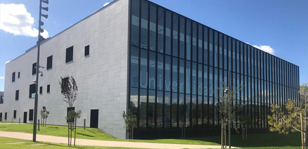 Alberga 8 aulas con capacidad para más de 400 alumnos, 19 seminarios, una biblioteca, aula magna y anfiteatro interior. También cuenta con diferentes espacios de aprendizaje informal, una cafetería y meeting point, y un parking con 120 plazas.