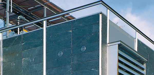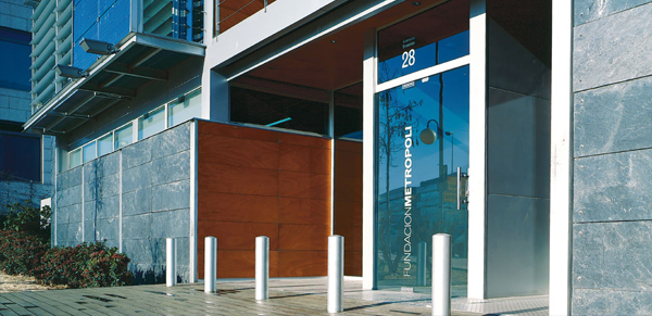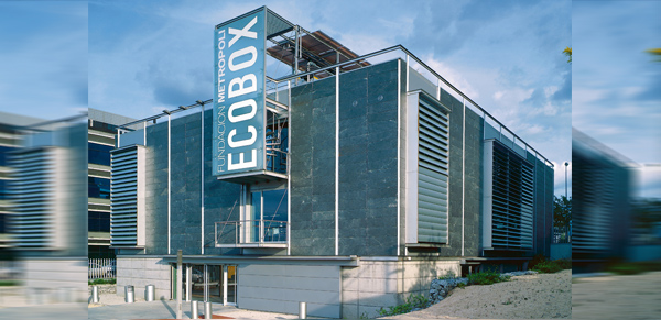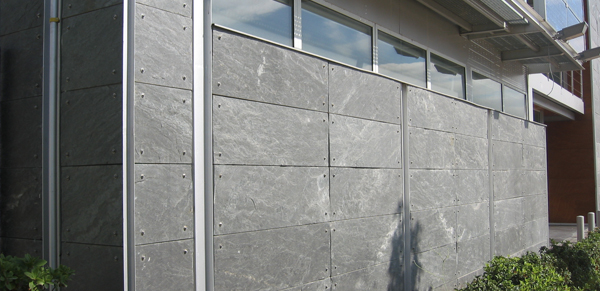 Como ejemplo cabe destacar el edificio de la Fundación Metrópoli, EcoBox. Una construcción de carácter experimental, que trata de integrar un espacio dedicado a la innovación y la creatividad con un gran protagonismo de la arquitectura y el compromiso bioclimático. En la que se contó para el revestimiento de fachada ventilada, con placas de Filita Gris en textura natural, ancladas a una subestructura metálica, mediante tornillos pasantes.