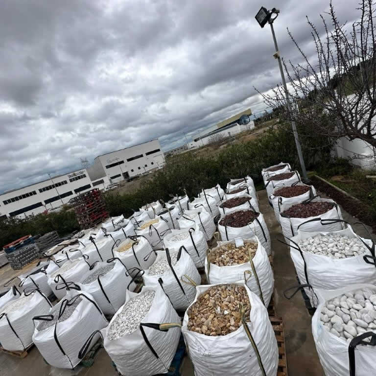 Más de 6.000m2 de naves con la maquinaria más moderna y precisa para conseguir una producción con los estándares de calidad más exigentes. Campa de almacenamiento 15.000 m2 de superficie para estocar más de 500 referencias de piedra natural y 150.000m2 de stocks permanente para abastecer todo tipo de proyectos.