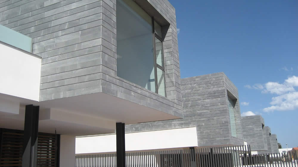 Naturpiedra JBERNARDOS has the privilege to operate the oldest Slate quarries in Spain, with 500 years of history. The first prescriber of Slate in Spain was the king Felipe II, who during his travels in Flanders and Germany between 1556 and 1559 enjoyed the roofs covered by Slate. Between 1559 and 1562 slate roofers reached Bernardos – Segovia from throughout Europe to work on the royal project of El Escorial Monastery. The Slate from Bernardos was chosen for its quality, durability as well as its lead gray color and its characteristic grain. Since then, the Bernardos’ Slate demonstrated its durability and beauty, on the most beautiful masterpieces of the history of Spanish architecture. From these oldest Slate Quarries in Spain, we present a noble and exclusive natural Stone with exceptional physical-mechanical qualities that was formed more than 550 million years ago during the Pre-Cambrian era: The Jbernardos’ Phyllite. Thanks to a longer metamorphism than the Slate, subjected to an incredible heat and pressure,Phyllite is stronger and denser than the traditional slate and other stones. That allows innovatives surface finishes: sandblasted, brushed, tumbled, flamed, providing solutions in flooring, cladding, countertops, slabs for ventilated facades, cobbles, roofing, cut to sizes Jobs (kitchen and bath tops, showe tray). Since our 3 Quarries and our factory in Bernardos, we guarantee the best service, controlling quality and the selection at all levels of the process, rea-ching the highest results to the standard tests of the most demanding markets: EC Certificate with class A1/T1/S1 and in USA, ASTM with the highest class S1, 75 years lifetime. Since our main showroom and office and logistic Headquarters in Villanueva del Pardillo-Madrid, we provide practical solutions for projects of builders, architects, designers and distributors , and we supply the most diverse range of stones, sizes and finishes, carefully selected in our own quarries or others national and international quarries we work with.