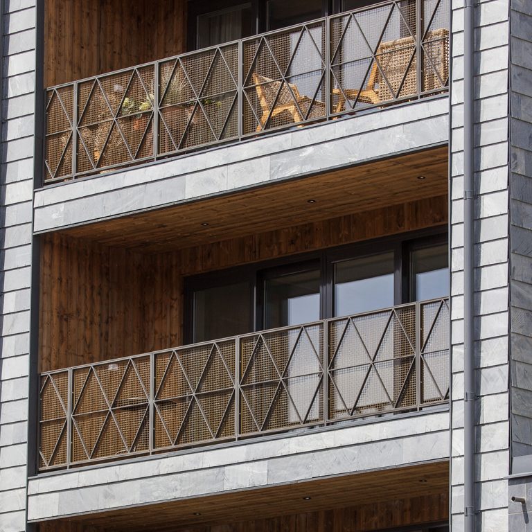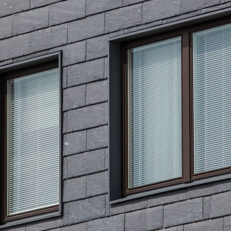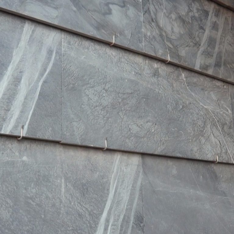 reclaiming stormwater. The material of the facade is mainly Phyllite in a