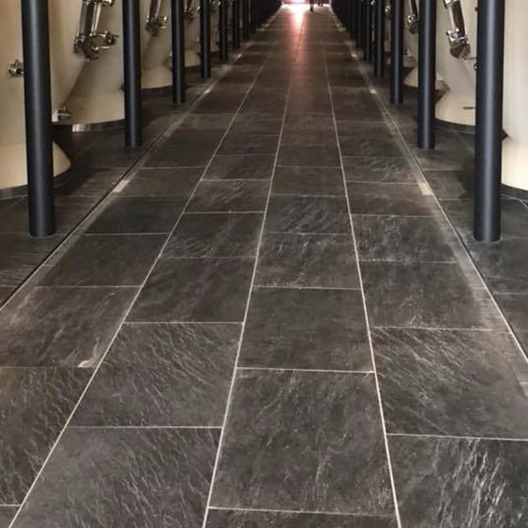 Naturpiedra took part in the works for this new cellar, supplying 155 m2 of brushed Phyllite in the 89.5x60x4 cm format for the floor, with a long brushed edge for the tiles facing the central aisle, and a few strips of brushed Phyllite 9xrandomx2 cm which act as channels.