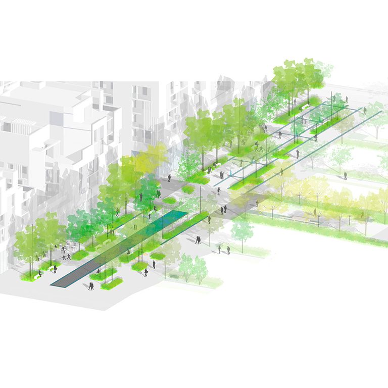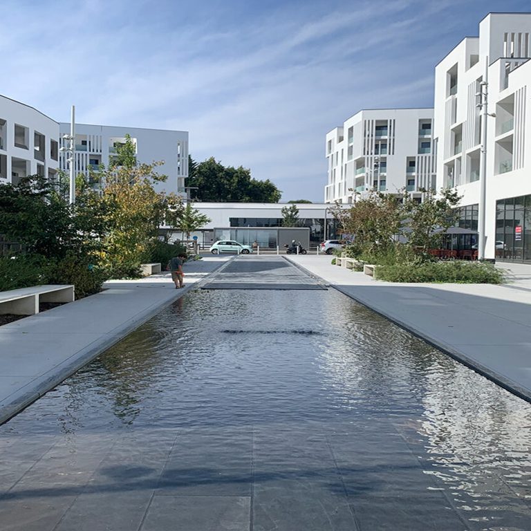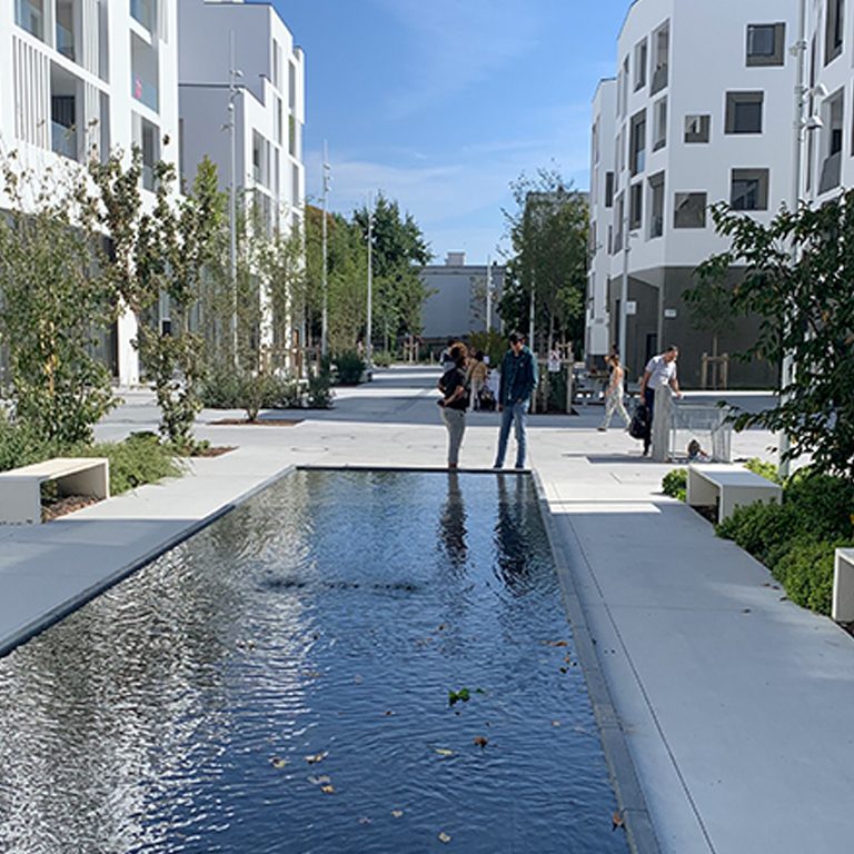 The project is perfectly integrated into the existing environment, with adapted volumes, a mixed program that includes housing, shops, offices, organized around public spaces (the square, the alleys, etc.).