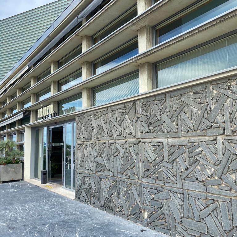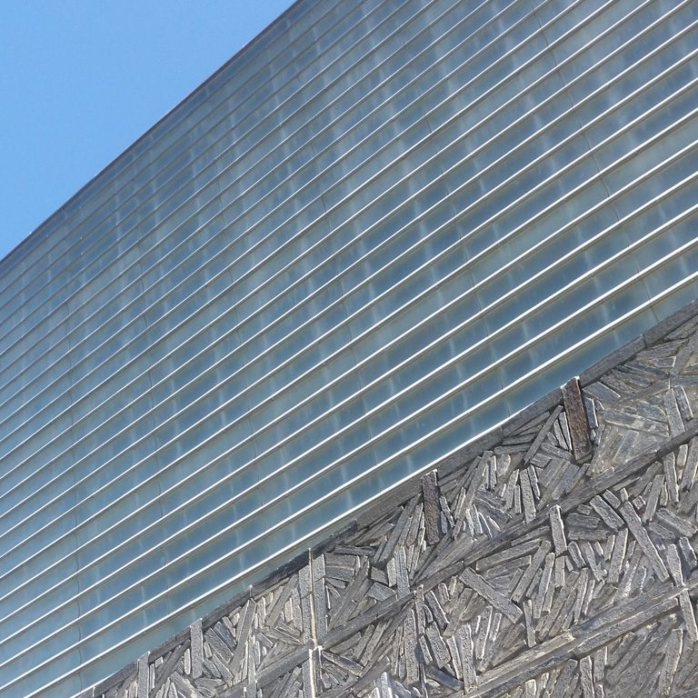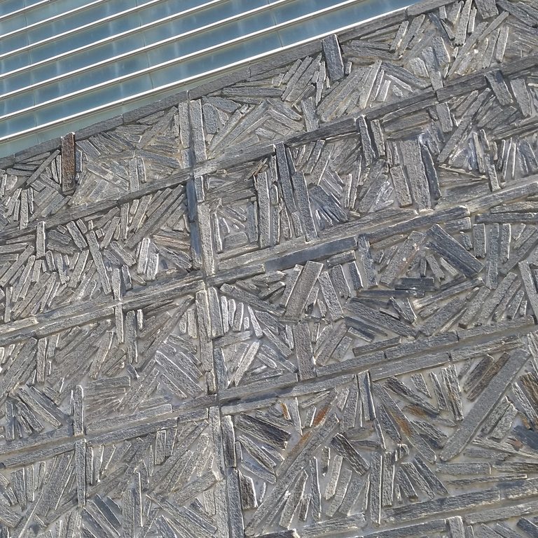 concrete panels, which were covered on their surface by splits of grey Phyllite