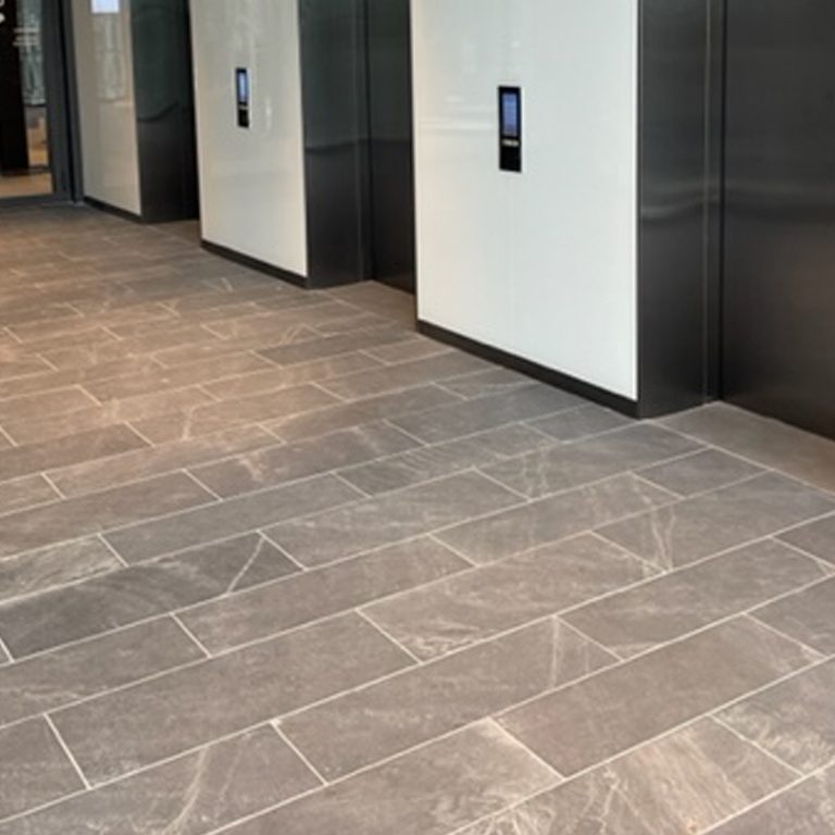 1430 m2 of flooring in honed Phyllite Jbernardos in combined formats