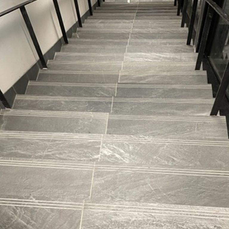 283 m2 of treads in honed Phyllite Jbernardos, with 3 non-slip grooves and