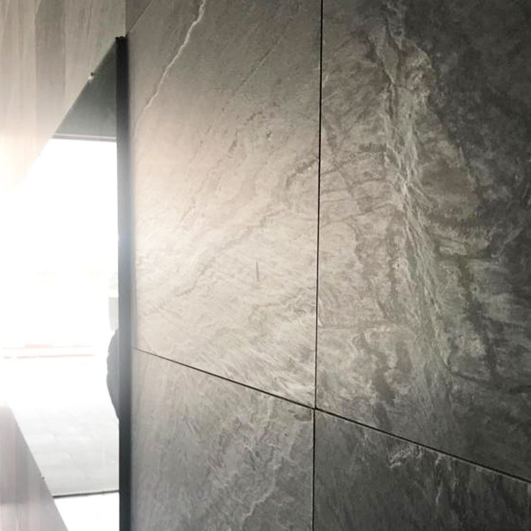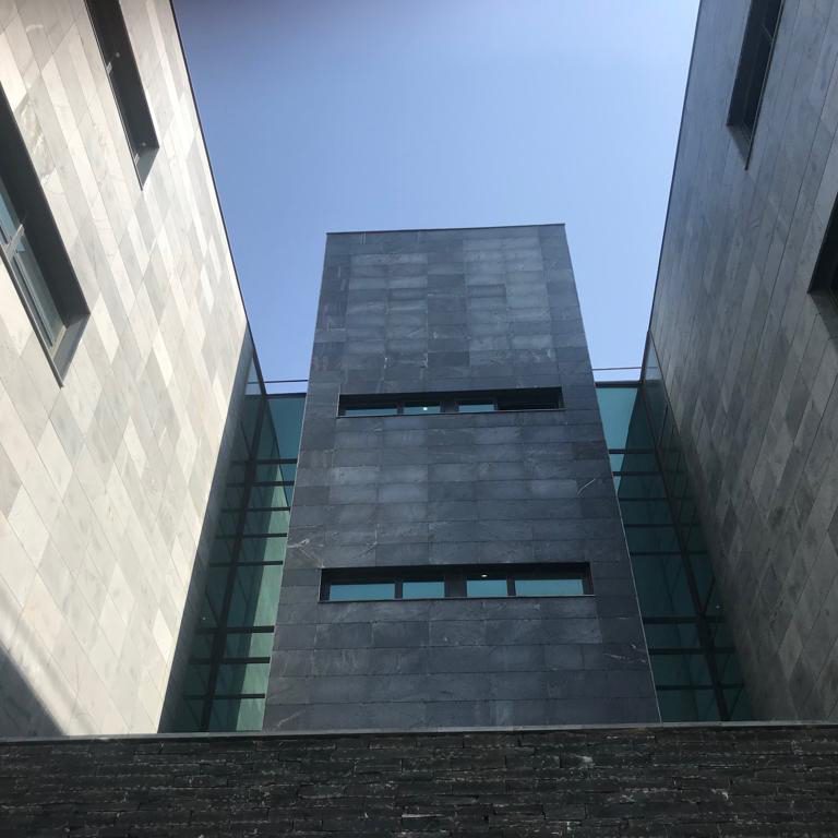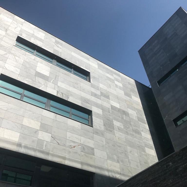 Ventilated facade with sawn Phyllite 80x40x3 con on metallic substructure 4000m2.