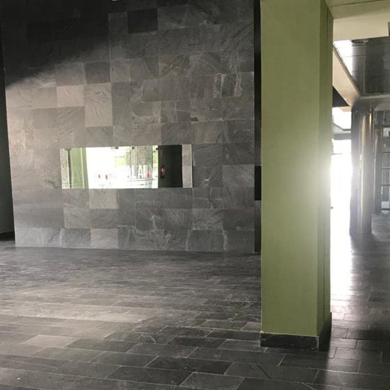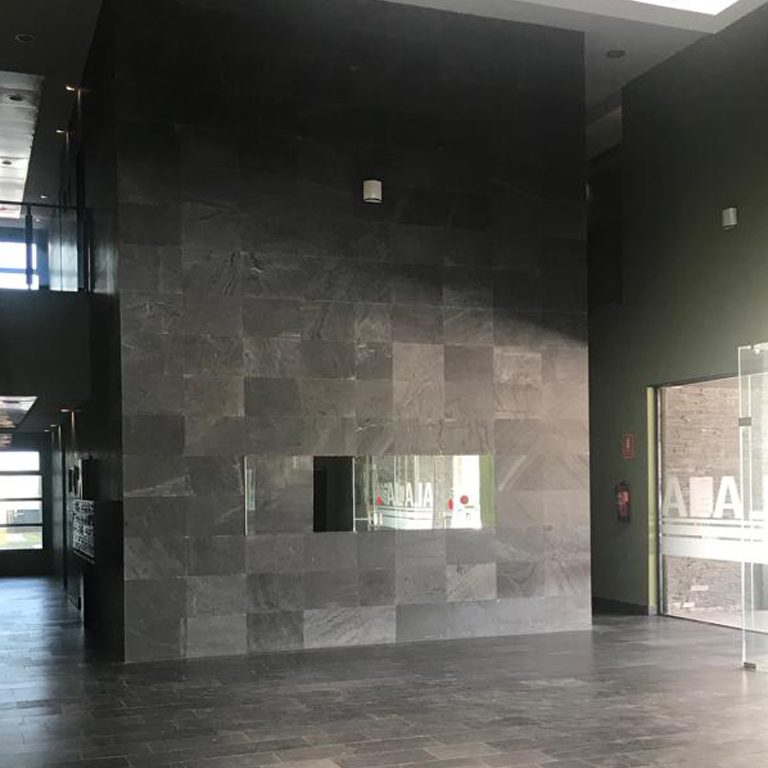 Indoor wall cladding with 60x40x2 cm honed Phyllite Jbernardos 800m2.
