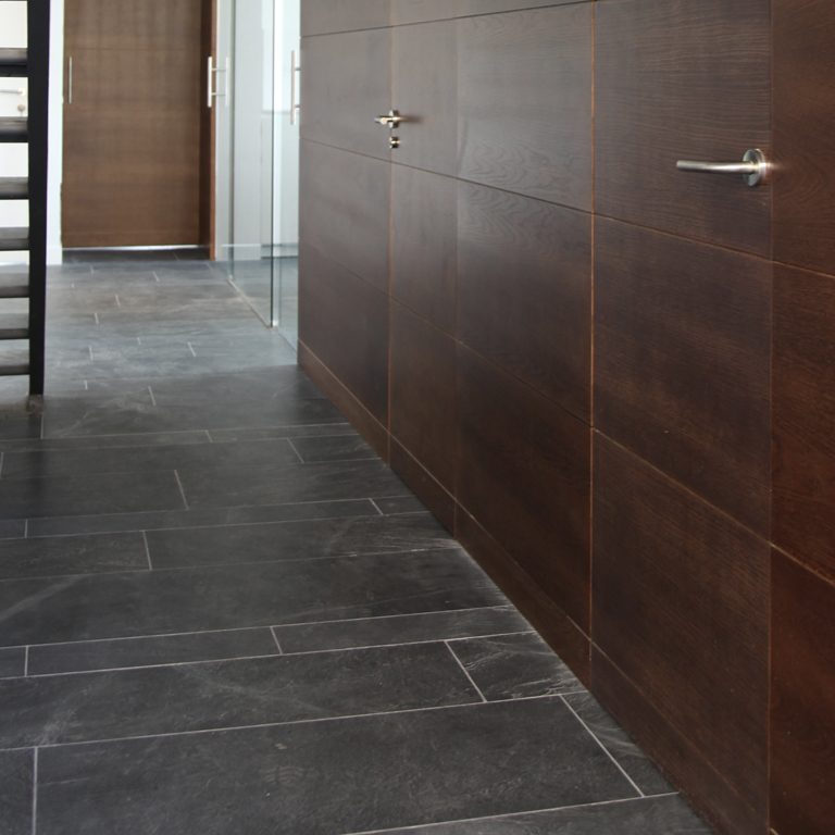 Ventilated facade, Masonry wall with multicolor Phyllite splits, floorings
