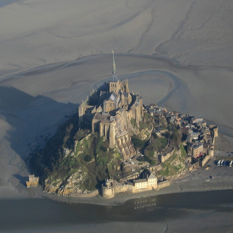 small rocky islet in Normandy (France) around the Abbey of Mont Saint Michel
