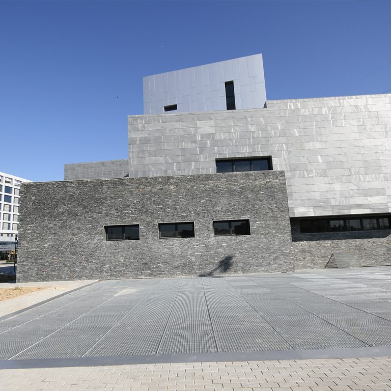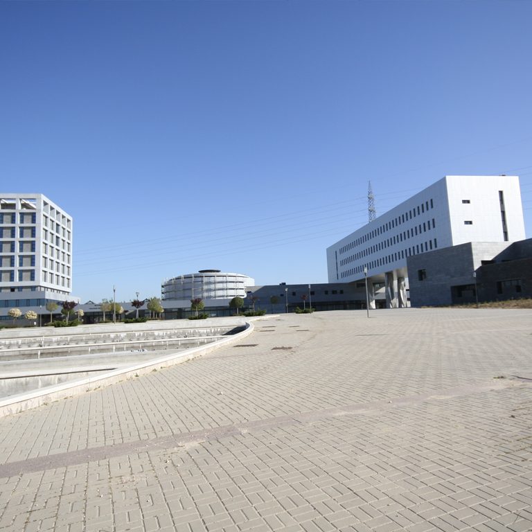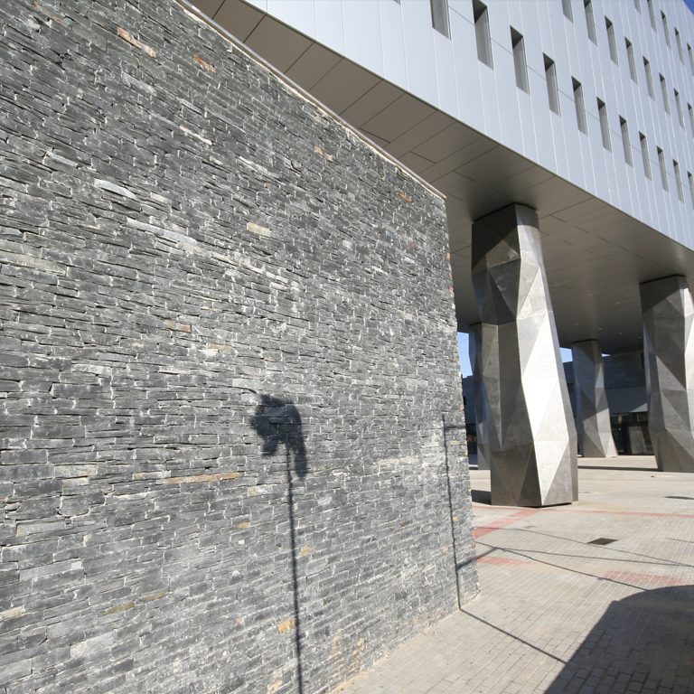 Building of the Rey Juan Carlos I University, which was completed in 2003.In it, the grey tones have total prominence, and together with the metallic