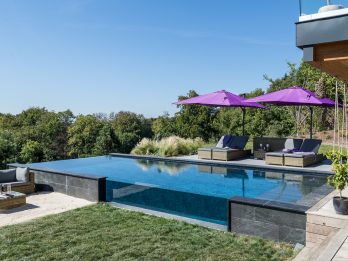 Dalles en Phyllite Jbernardos brossée et margelles de piscine en Filita Jbernardos brossée + 1 long chant brossé