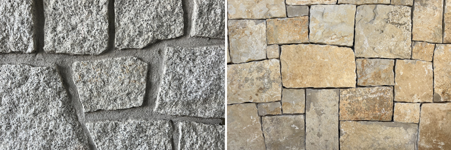 Estos mismos materiales podemos usarlos con diversas labras, que varían el aspecto de la colocación; lo que comúnmente se denomina “aparejo”.  Formas en tipo laja, irregular, cuadreada, costero. Ofreciendo un amplio abanico de soluciones constructivas.