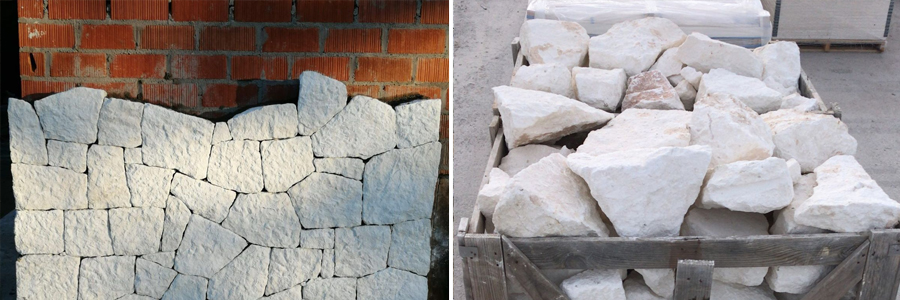 Varios de las diferentes calizas que comercializa Naturpiedra, pueden ser utilizadas también como mampostería. Como es el caso de las calizas:  Fósil, Hueso, Clara, Gold…
