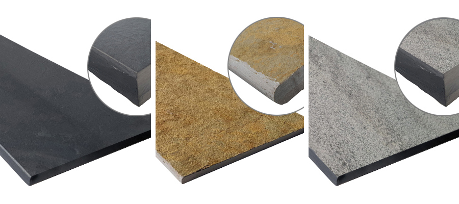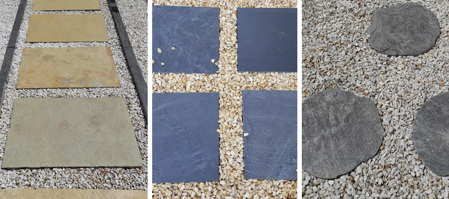 - Nuevos formatos, como los nuevos pasos cuadrados en Filita Gris Jbernardos, en 40×40 y 30x30x3 cm. O pasos irregulares XXL en Cuarcita Cobre Jbernardos.