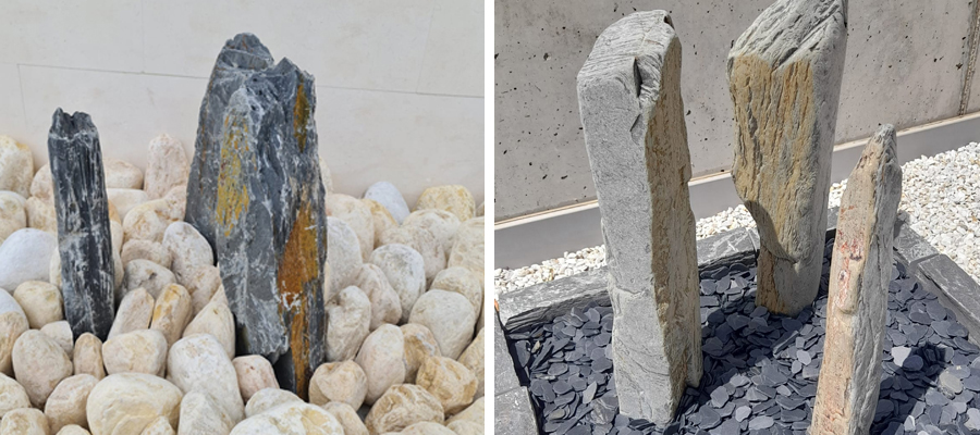 Nuestros pequeños monolitos en pizarra, tienen sitio en cualquier decoración de terraza o pequeño jardín, ahora puedes encontrarlos envejecidos con el acabado Tambor, para darle un toque más sofisticado.