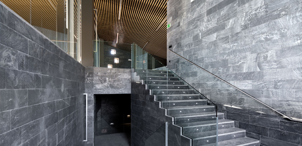 La bodega institucional La Grajera en Logroño, proyecto del Gobierno de La Rioja para la difusión e investigación del vino. Por la que el estudio Virai Arquitectos, autores de dicha obra, recibió el primer premio del concurso internacional de arquitectura sostenible La Bodega Institucional de ‘La Grajera’ obtiene el primer premio del concurso internacional de arquitectura sostenible MosBuild Architecture and Design Awards (MADA). Donde también podemos ver el protagonismo, como piedra para interiores, de la Filita Gris Jbernardos con acabado apomazado.