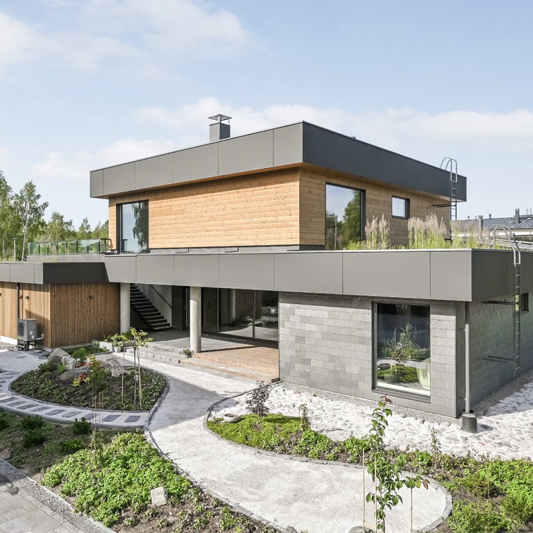 Vivienda unifamiliar, inspirada en la arquitectura industrial. Consta de una superficie de 220 m2 en dos plantas, La casa está diseñada para satisfacer las necesidades de una familia de 4 personas, era importante que el diseño de interiores del hogar fuera funcional y práctico en la vida cotidiana, teniendo en cuenta además la calidad del aire interior y la eficiencia energética (ejemplo con la fachada ventilada de madera tratada térmicamente combinada con pizarra). La arquitectura y el interior muestran matices japoneses y diseño nórdico.