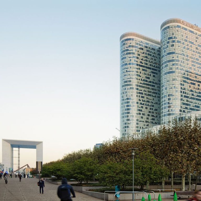 Este edificio de oficinas, fue diseñado por el Arquitecto francés Jean Paul Viguier y construido en 2001, el más importante en Europa a finales del siglo XX con 350 000 m2 . Se compone de 2 torres gemelas de 180 m conectadas entre sí por un elemento llamado “intertorre” y de 3 edificios bajos de 8 plantas conectadas entre ellas y con las torres por un gran atrio a 44 m de altura y de más de 1 hectárea de superficie. Y está situado en el eje desde el Louvre pasando por los campos Elíseos, el Arco del triunfo y hasta el Arco del Distrito de La Défense.
