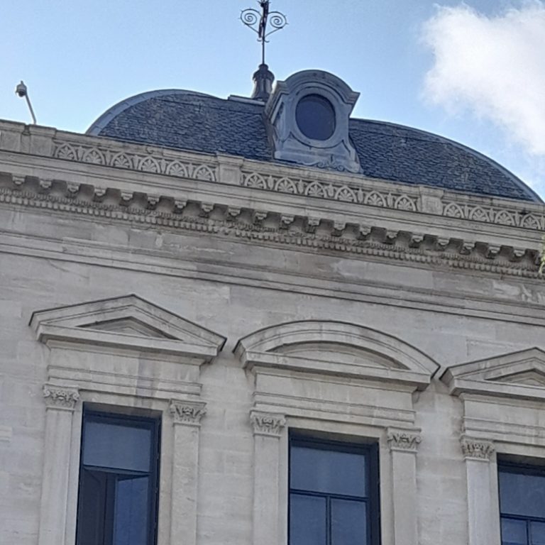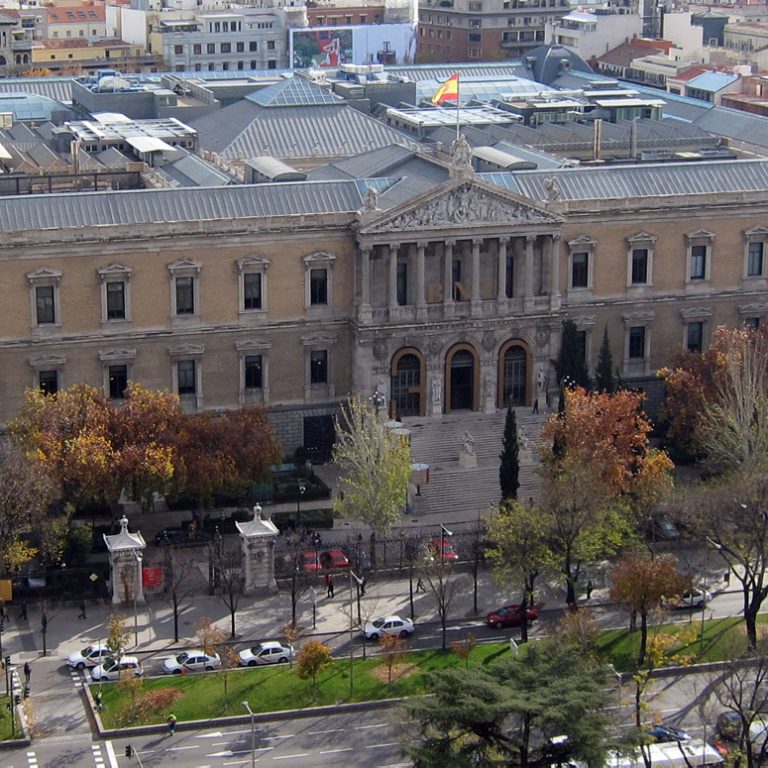 El edificio de la Biblioteca Nacional de España de planta rectangular, presenta una fachada imponente con elementos neoclásicos típicos, como columnas, frontones y una distribución simétrica. El estilo neoclásico se caracteriza por su inspiración en la arquitectura clásica de la antigua Grecia y Roma, con énfasis en la armonía, la proporción y la simetría.