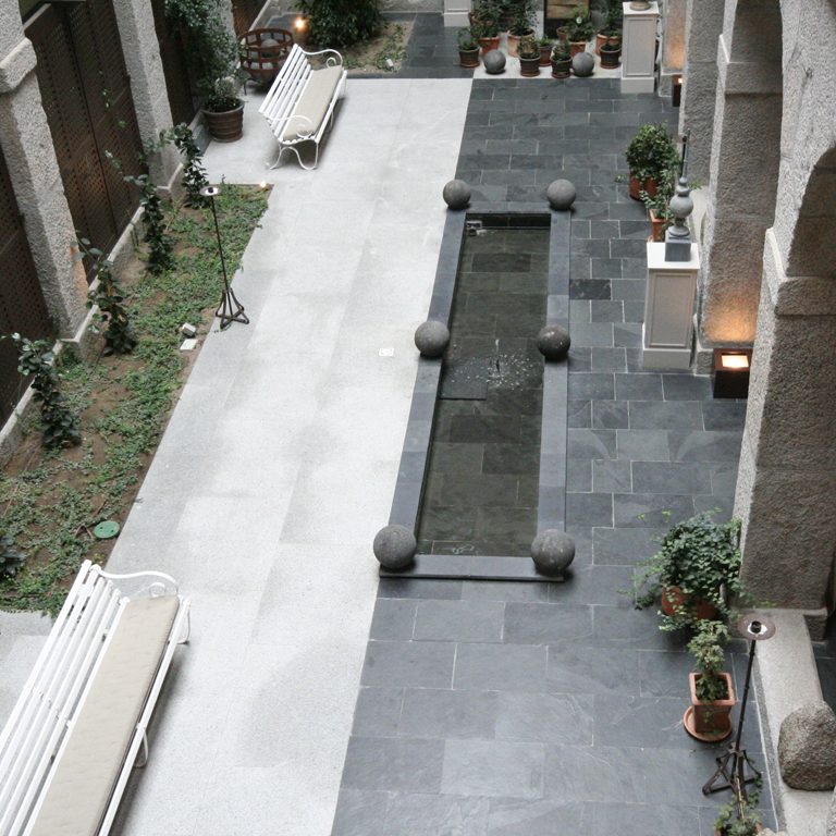 Este exclusivo escenario dispone de 16 salas de reuniones con capacidad para más de 600 personas y 127 habitaciones. En donde los solados de zonas comunes, luce la pizarra Negro Ebano Jbernardos, colocados por los equipos de Naturpiedra Obras. La decoración es moderna, las estancias luminosas y confortables, y el entorno monumental y natural en el que se encuentra, en pleno corazón de la Sierra de Guadarrama, al lado del Palacio Real de la Granja, de sus preciosos jardines y fuentes y de la Real Fábrica de Cristales, convertida en Museo del Vidrio, convierte al hotel en un lugar perfecto para relajarse y descansar y disfrutar de la elegante belleza del lugar.