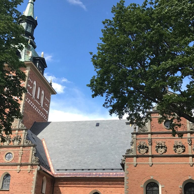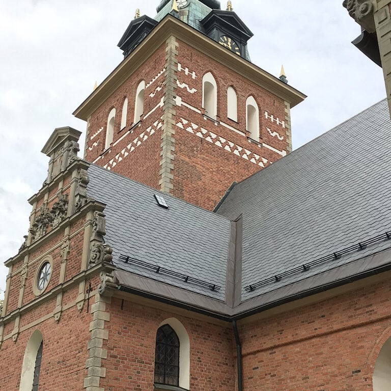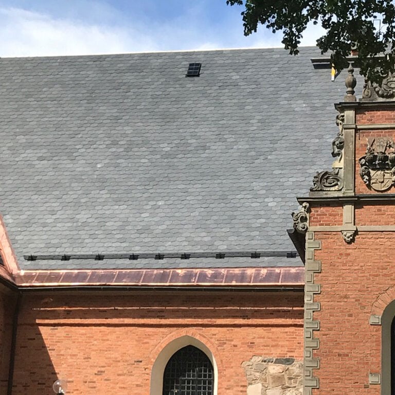 La hermosa cubierta de pizarra de la iglesia de Jäders en Eskilstuna, obra importante de la arquitectura renacentista sueca, estaba a punto de desmoronarse después de muchos años de exposición a la intemperie. La restauración era imprescindible para proteger la iglesia. El tipo de pizarra era una pizarra inglesa de la que aún existe producción. Sin embargo, resultaba tan costoso reemplazar las tejas rotas por otras nuevas del mismo tipo que no fue posible llevar a cabo la restauración. Ante la importancia de preservar el patrimonio cultural los arquitectos se decidieron finalmente cambiar toda la cubierta por una pizarra que ha demostrado su calidad y belleza a lo largo de los últimos siglos en el patrimonio arquitectónico español pero también mundial como es la Filita de cubierta Naturpiedra.