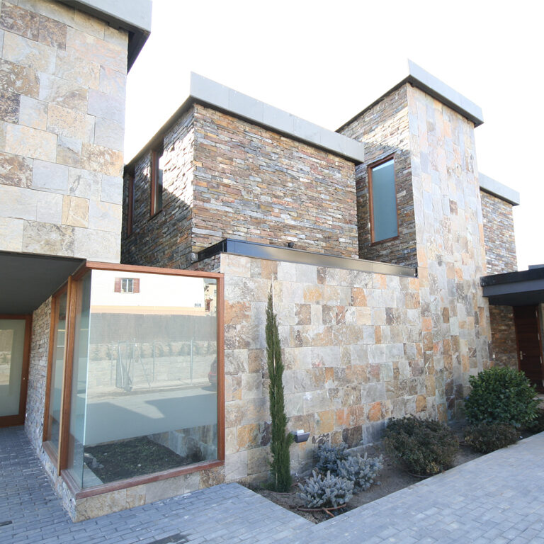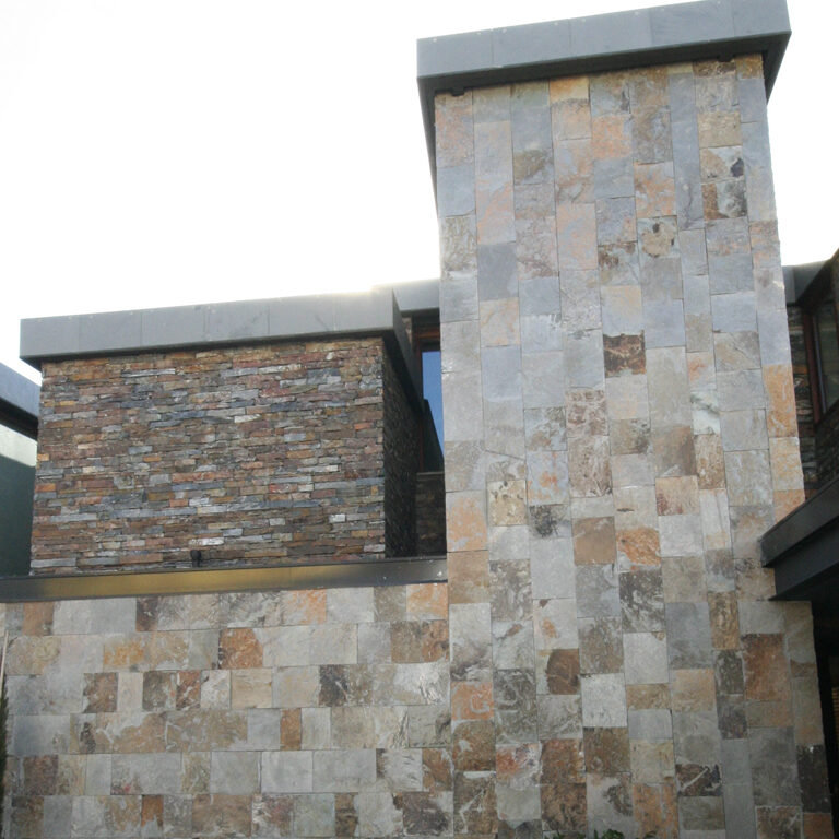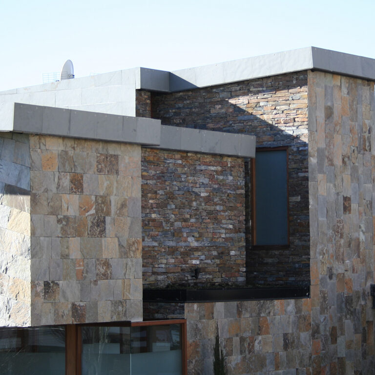 FACHADA DE VIVIENDA REVESTIDA CON CUARCITA NATURPIEDRA Y LAJA NATURPIEDRA MULTICOLOR