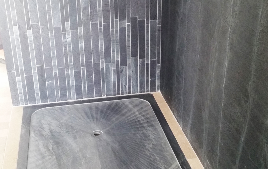 Plato de ducha en y revestimiento de ducha en diversos formatos, con filita.