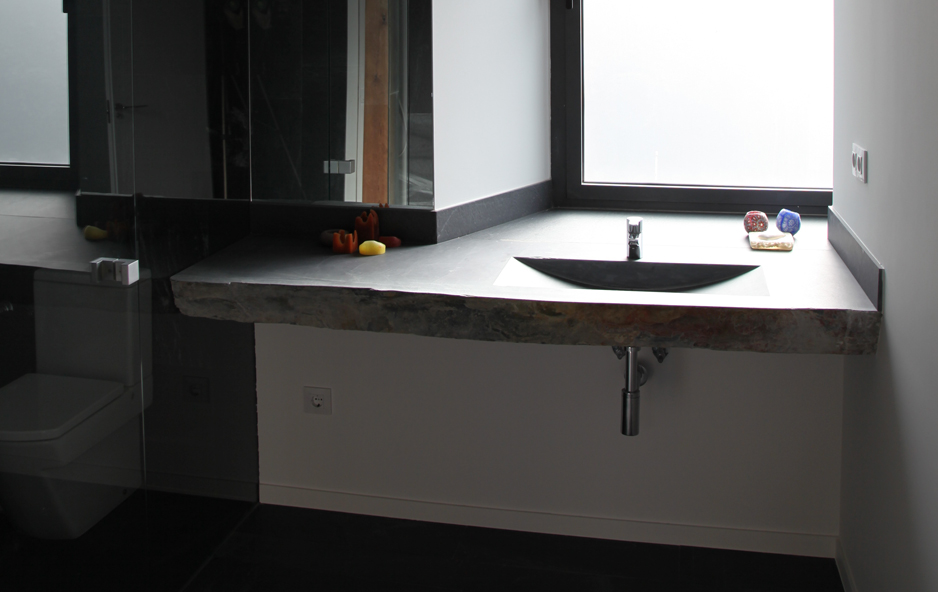 Encimera con lavabo vaciado en la propia piedra