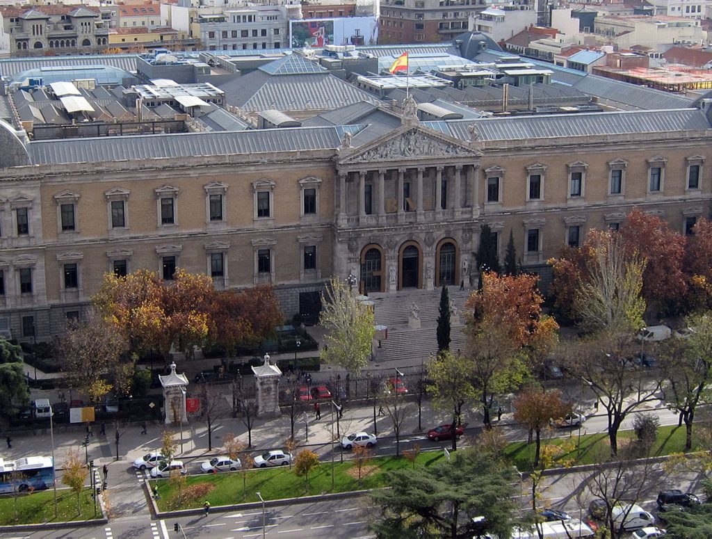 The building of the National Library of Spain with a rectangular floor plan, presents an imposing facade with typical neoclassical elements, such as columns, pediments and a symmetrical distribution. The neoclassical style is characterized by its inspiration in the classical architecture of ancient Greece and Rome, with an emphasis on harmony, proportion and symmetry.