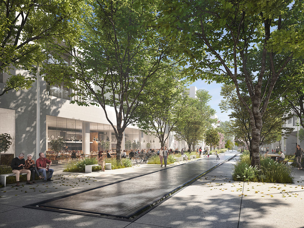 The project is perfectly integrated into the existing environment, with adapted volumes, a mixed program that includes housing, shops, offices, organized around public spaces (the square, the alleys, etc.).