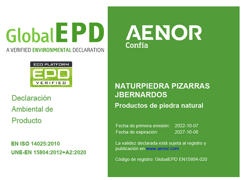 En su camino a consolidarse como una empresa ecológica y sostenible, Naturpiedra ha conseguido la Declaración Ambiental de Producto (DAP) de la Filita de sus canteras de Bernardos (Segovia); en todos los formatos y acabados comercializados: